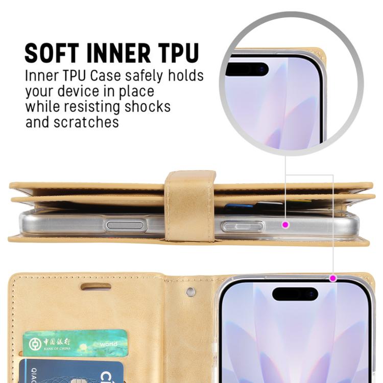 Funda de piel para iPhone 17 GOOSPERY MANSOOR DIARY con 9 ranuras para tarjetas (dorada)