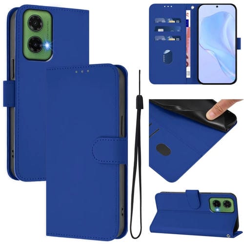 Funda de Piel Sintética con Cordón para Motorola Moto G35 (Azul Oscuro)
