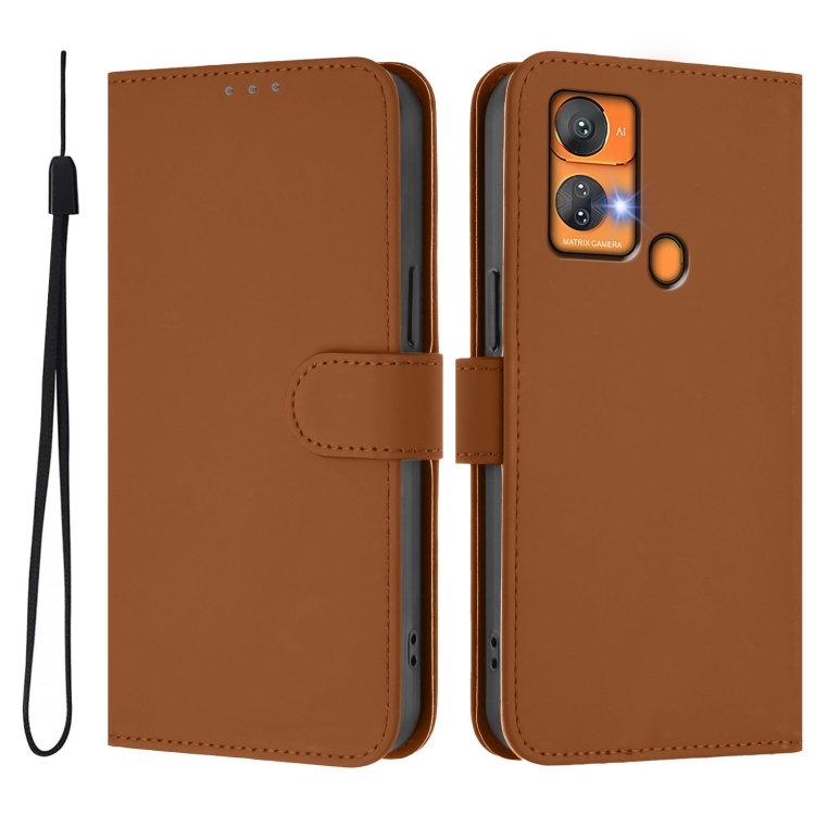Funda de Piel Sintética con Cordón para Teléfono Oukitel C33 (Marrón)