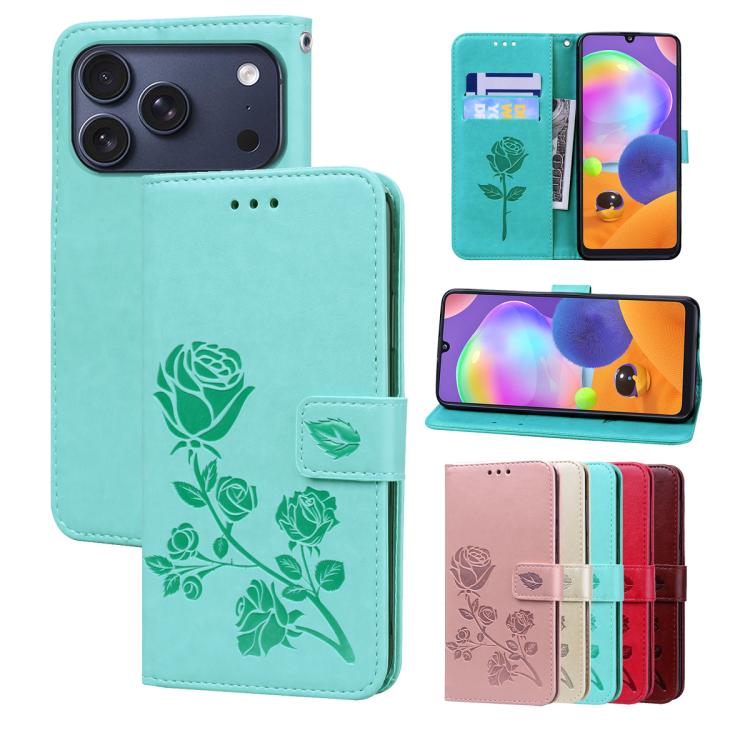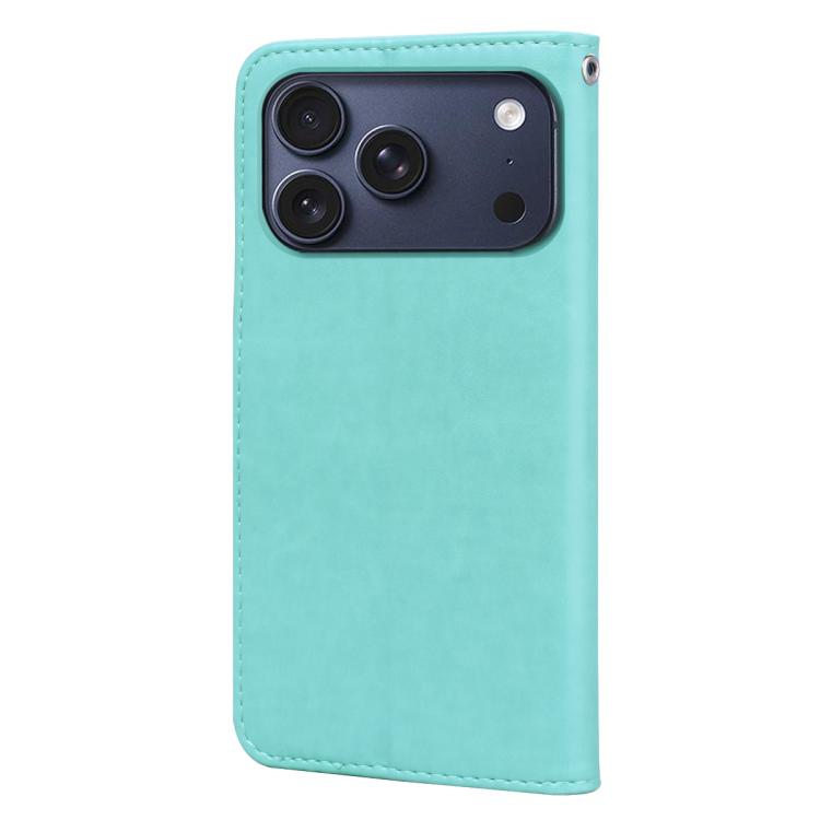 Funda de piel sintética con tapa abatible y relieve rosa para iPhone 17 Pro Max (verde)