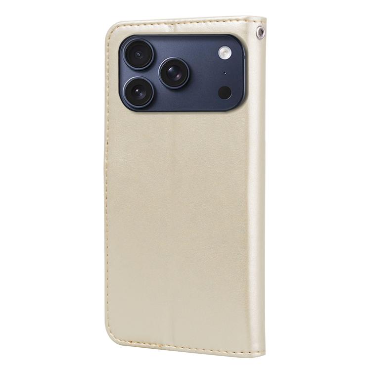 Funda de piel sintética con tapa y relieve rosa para iPhone 17 Pro Max (dorada)