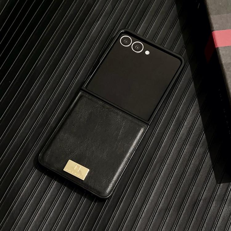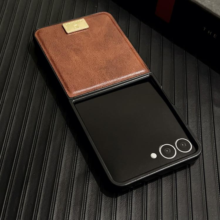 Funda de PU con textura Crazy Horse para Samsung Galaxy Z Flip7 5G (negra)