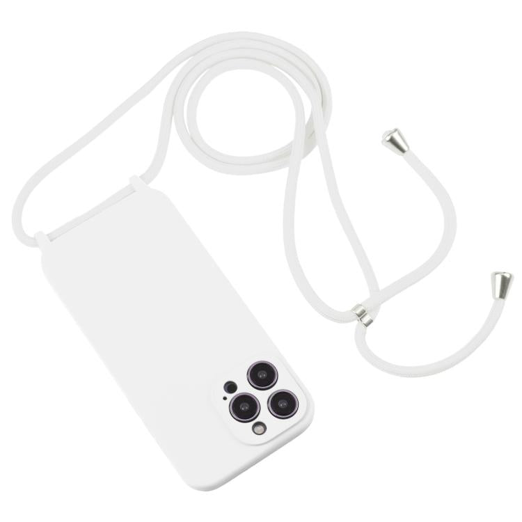 Funda de silicona líquida con correa cruzada para iPhone 17 Pro (blanca)