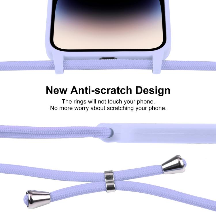 Funda de silicona líquida con correa cruzada para iPhone 17 Pro Max (morado claro)