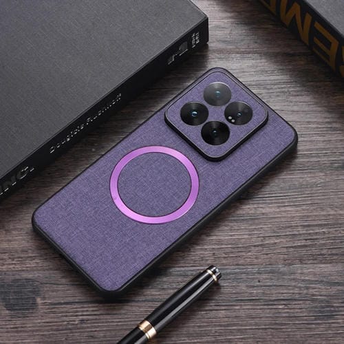 Funda De Teléfono Con Textura De Tela Magnética De Pu Para Xiaomi 14T Cd (Morado)