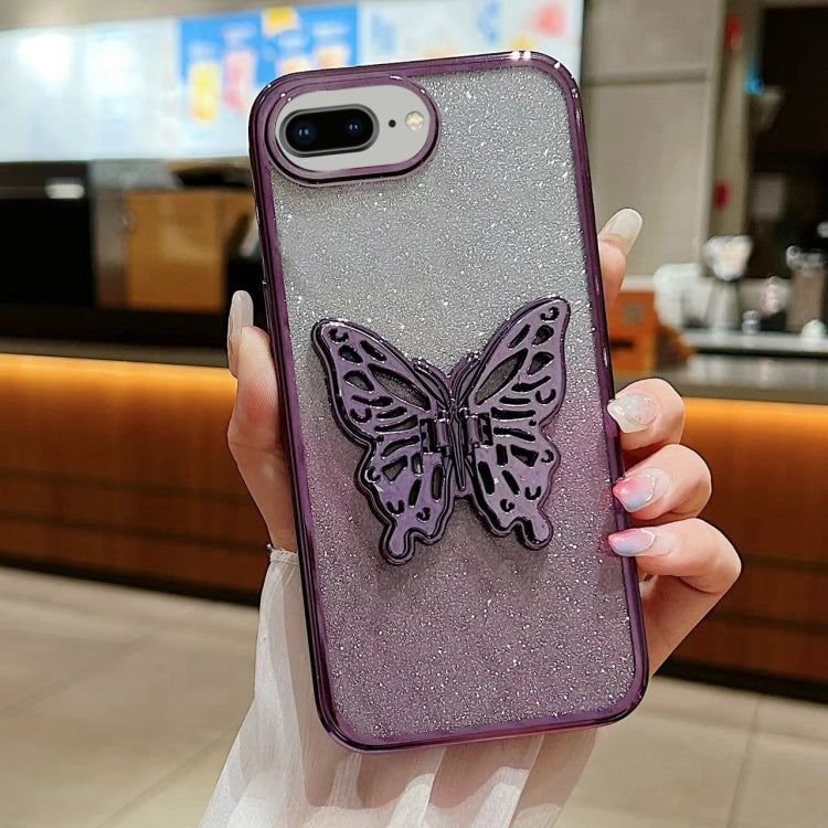 Funda TPU iPhone 7 Plus/8 Plus Diseño Mariposa 3D Purpurina Degradada (Púrpura)