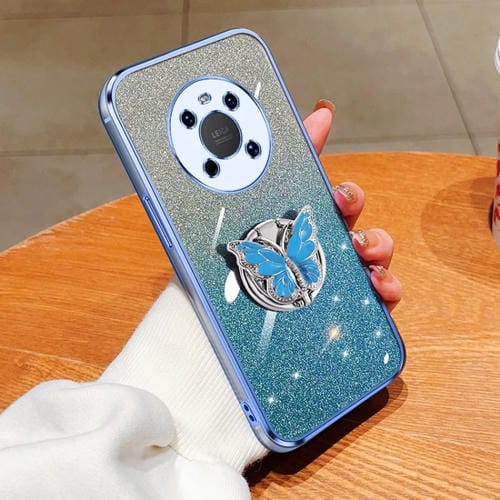 Funda TPU con Soporte Mariposa Purpurina Degradada para Huawei Mate 40 (Azul Sierra)