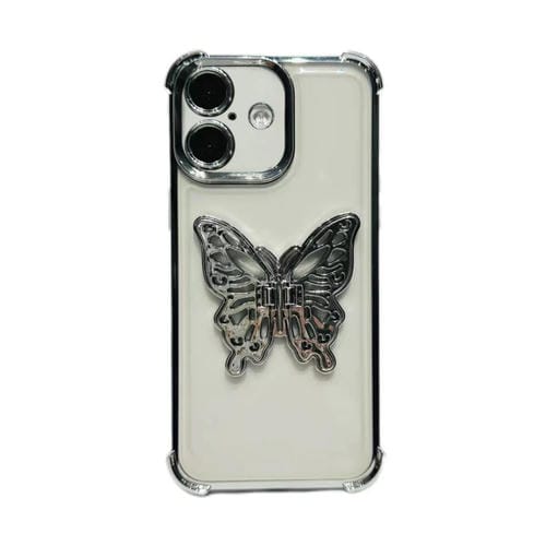 Funda TPU con Soporte Mariposas 3D Electropolada para iPhone 16 (Plateada)