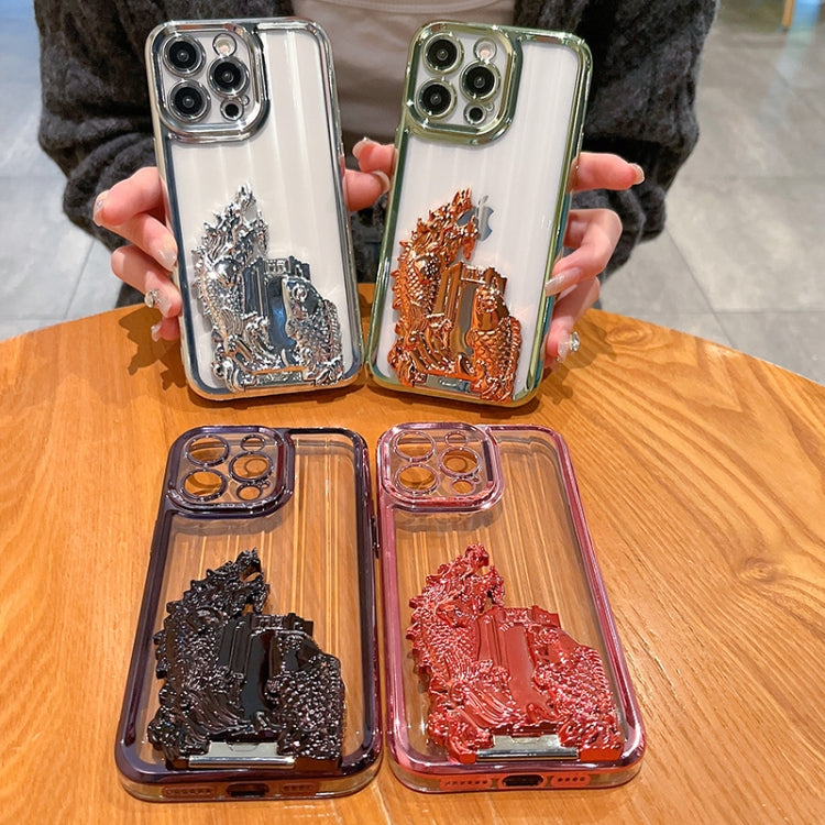 Funda TPU Galvanizada Dragón Saltando en la Puerta iPhone X/Xs (Marrón)