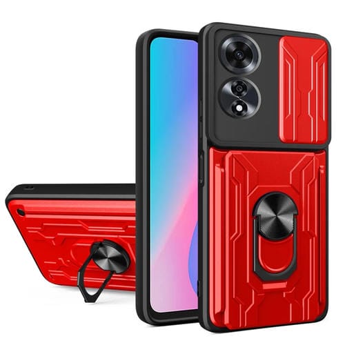 Funda Deslizante de TPU y PC con Ranura para Tarjetas para Oppo A60 4G (Roja)