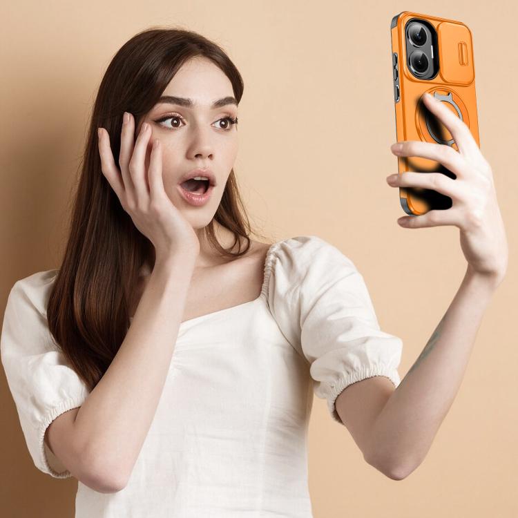 Funda deslizante con anillo protector de cámara para Redmi Turbo 4 Pro/Poco F7 (naranja)