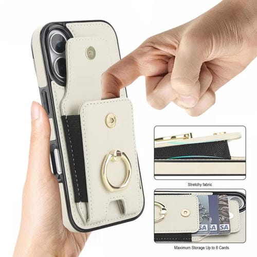 Funda elástica con tarjetero y anilla para iPhone 17 (blanca)