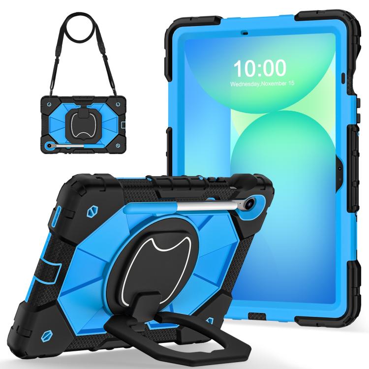 Funda híbrida de silicona con diseño de robot para Samsung Galaxy Tab S10 FE/S9 (negro y azul)