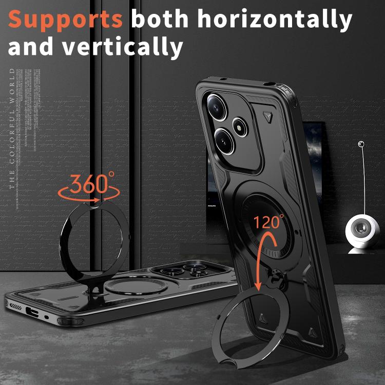 Funda híbrida de TPU con soporte de anillo MagSafe para Redmi 12 5G (negro)