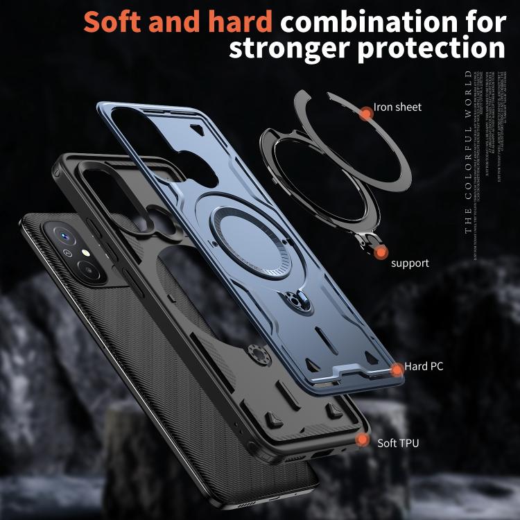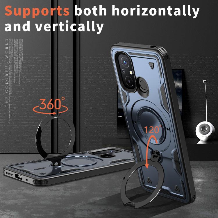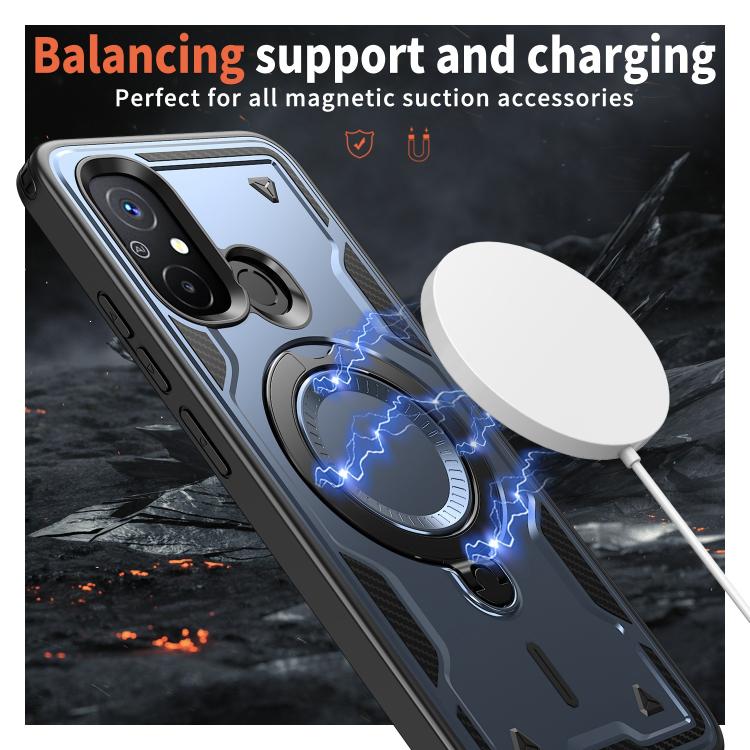 Funda híbrida de TPU con soporte de anillo MagSafe para Redmi 12C 4G (azul)