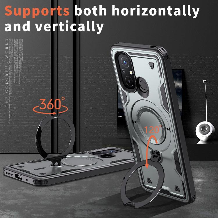 Funda híbrida de TPU con soporte de anillo MagSafe para Redmi 12C 4G (gris)