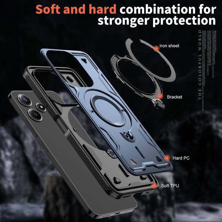 Funda híbrida de TPU con soporte de anillo MagSafe para Redmi 13 4G/5G/Note 13R (azul)