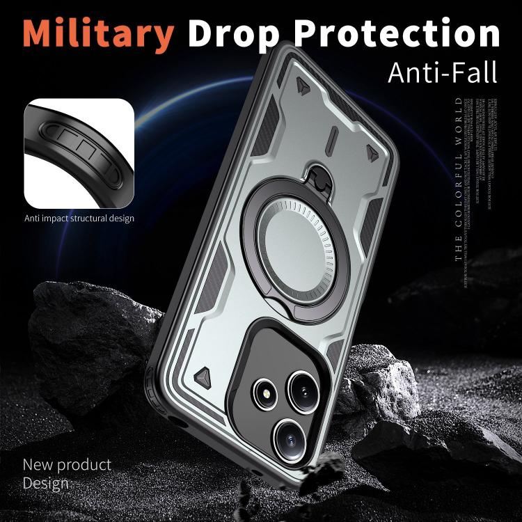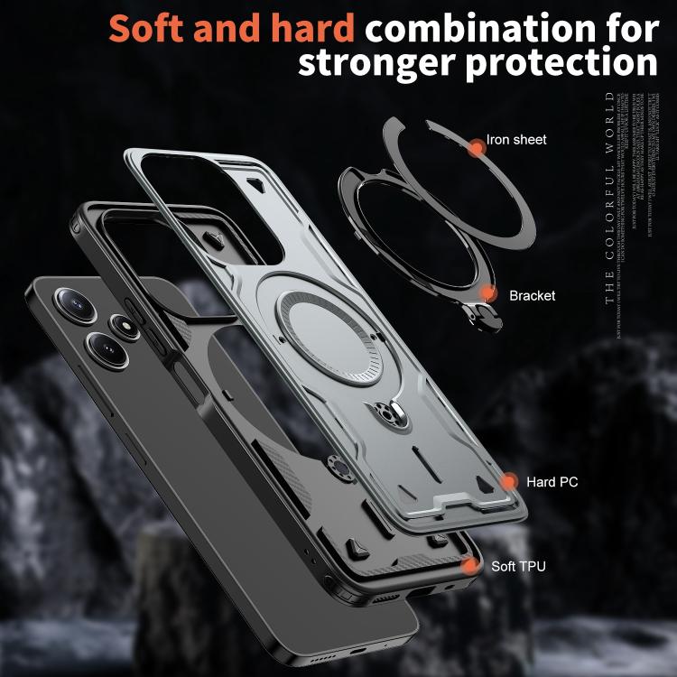 Funda híbrida de TPU con soporte de anillo MagSafe para Redmi 13 4G/5G/Note 13R (gris)