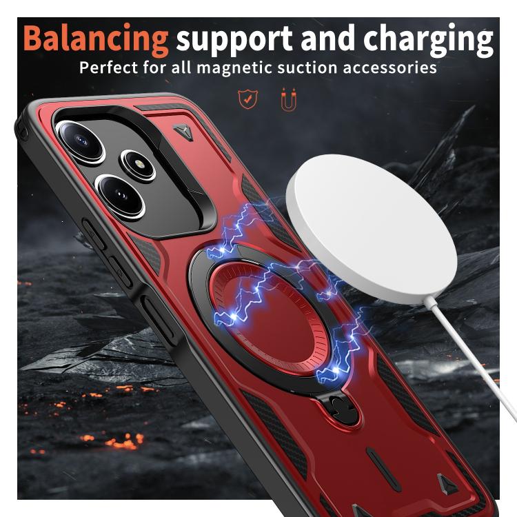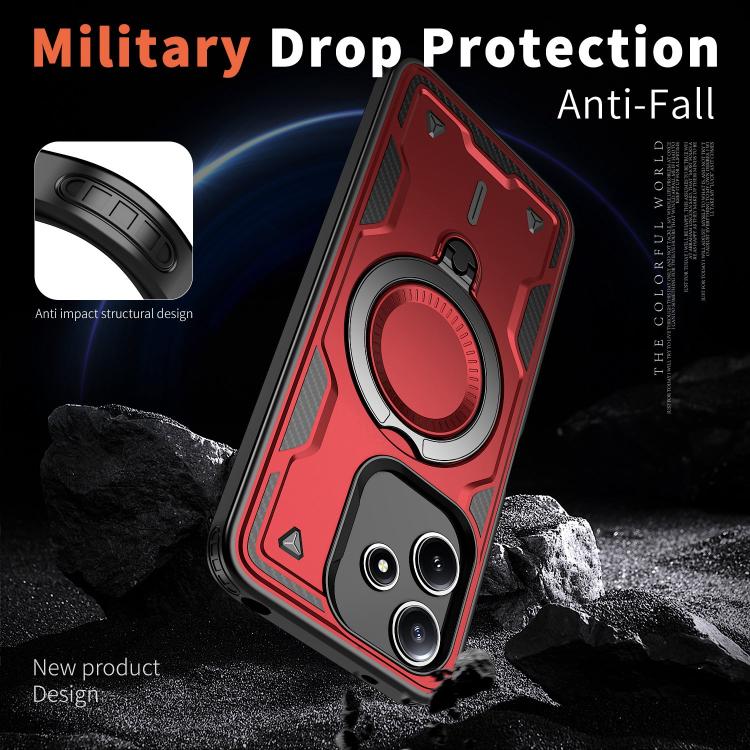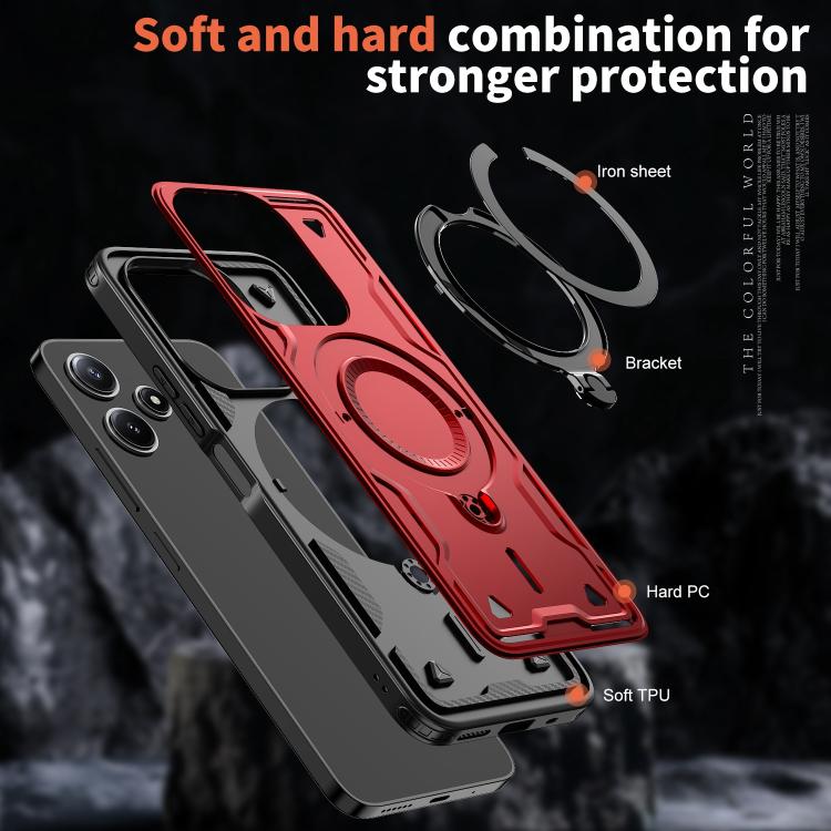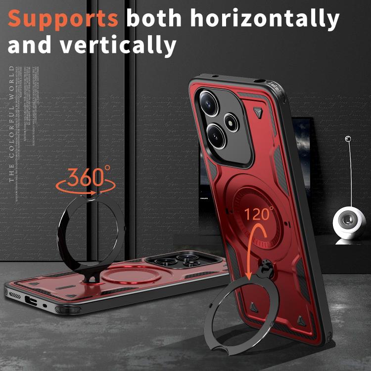 Funda híbrida de TPU con soporte de anillo MagSafe para Redmi 13 4G/5G/Note 13R (Roja)