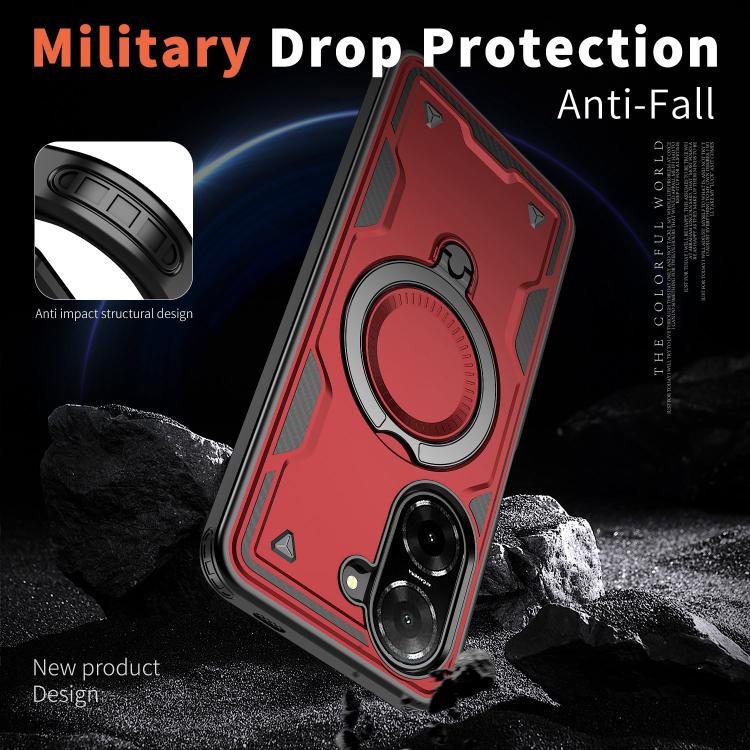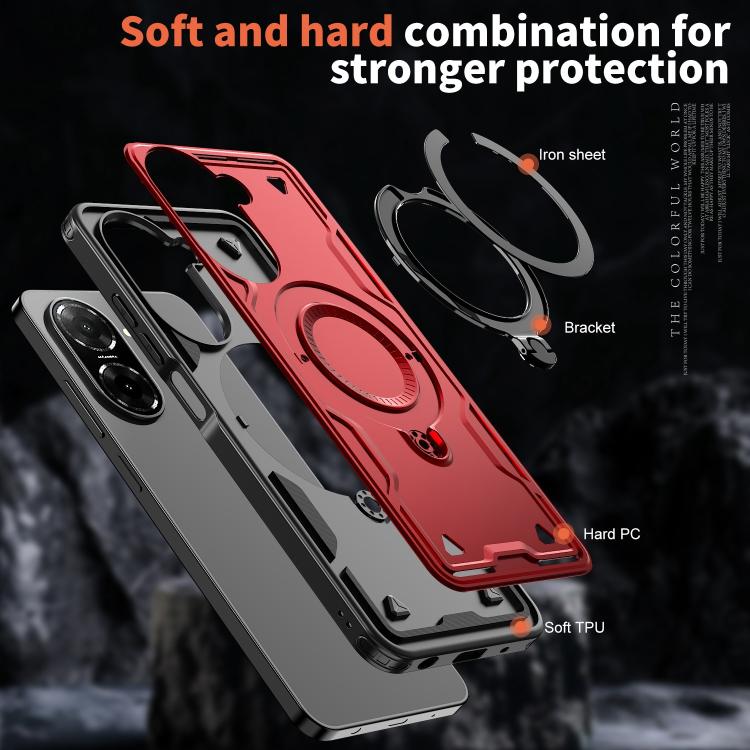 Funda híbrida de TPU con soporte de anillo MagSafe para Redmi A5 4G (171,7 mm) y Poco C71 (roja)