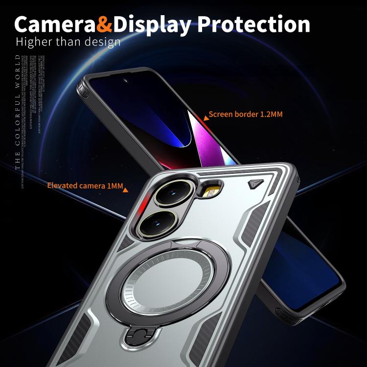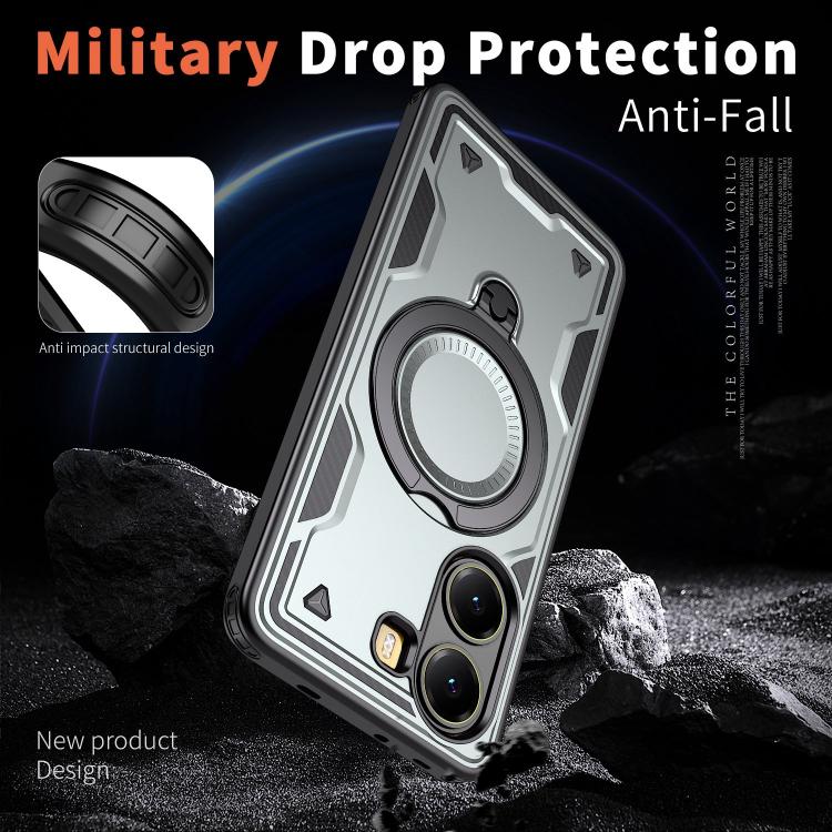 Funda híbrida de TPU con soporte de anillo MagSafe para Xiaomi Poco X7 Pro 5G (gris)