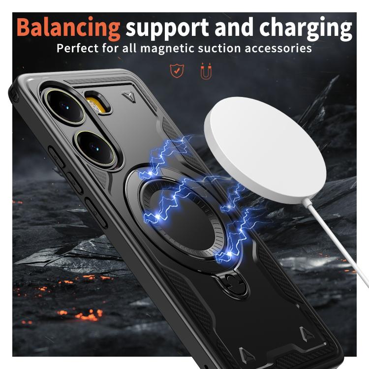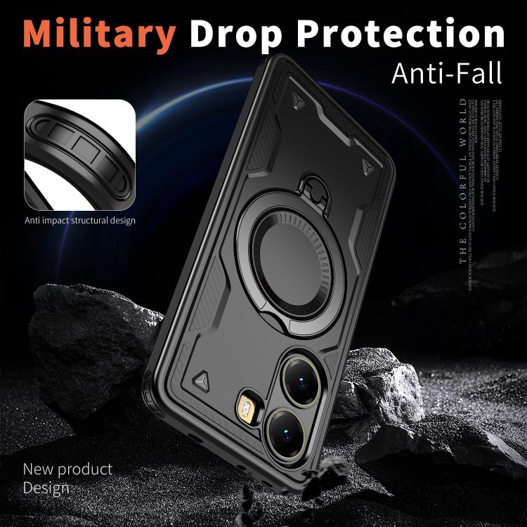 Funda híbrida de TPU con soporte de anillo MagSafe para Xiaomi Poco X7 Pro 5G (negro)