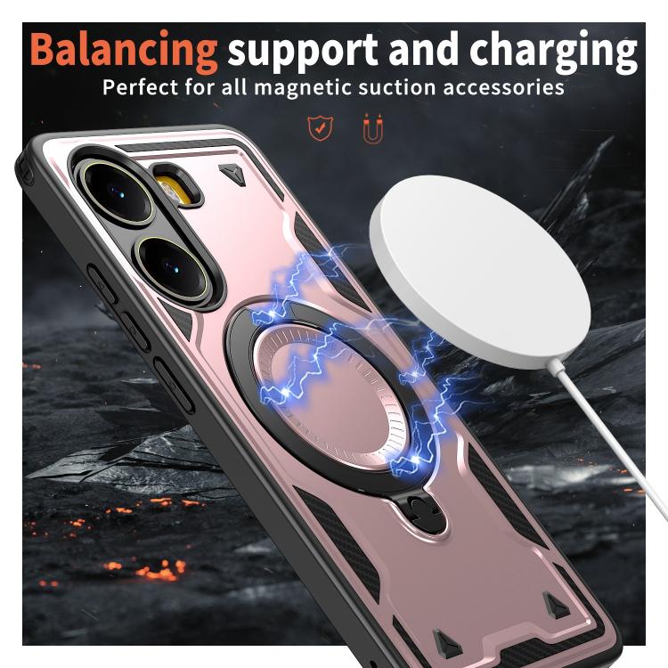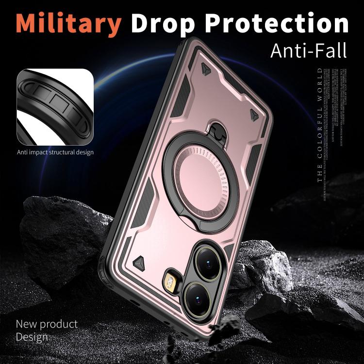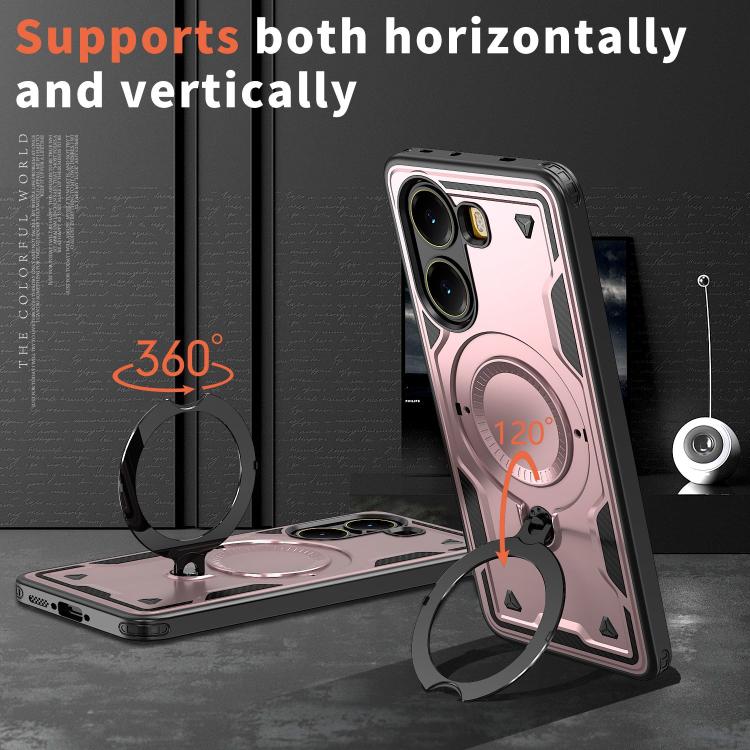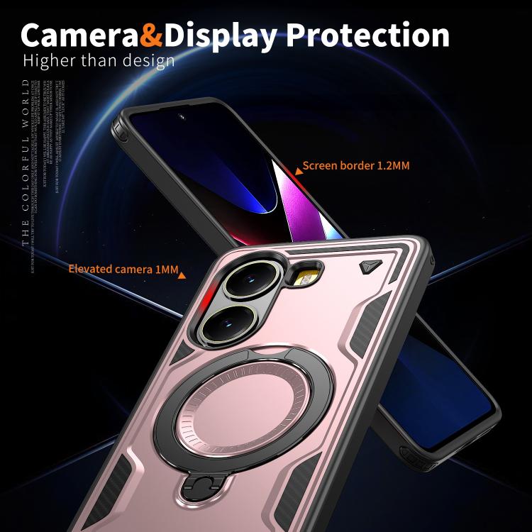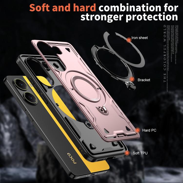 Funda híbrida de TPU con soporte de anillo MagSafe para Xiaomi Poco X7 Pro 5G (oro rosa)