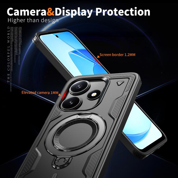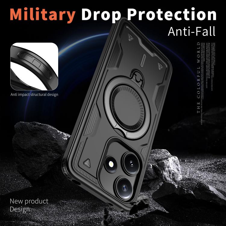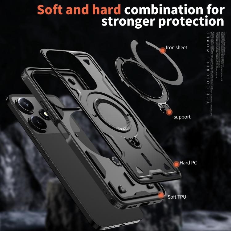 Funda híbrida de TPU con soporte para anillo MagSafe para Xiaomi Poco M6 Pro 5G (negro)