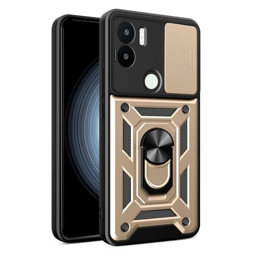 Funda Híbrida de TPU y PC con Diseño de Cubierta Deslizante para Cámara Xiaomi Redmi A1+ (Dorada)