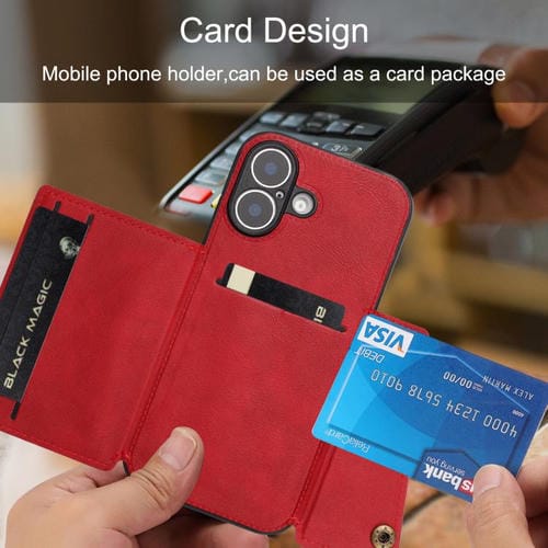 Funda magnética con doble hebilla y ranuras para tarjetas para iPhone 17 (roja)
