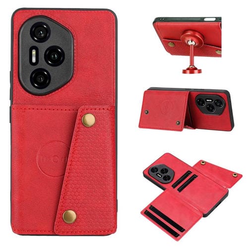 Funda Magnética para Honor 300 Pro con Ranuras para Tarjetas y Doble Hebilla (Rojo)