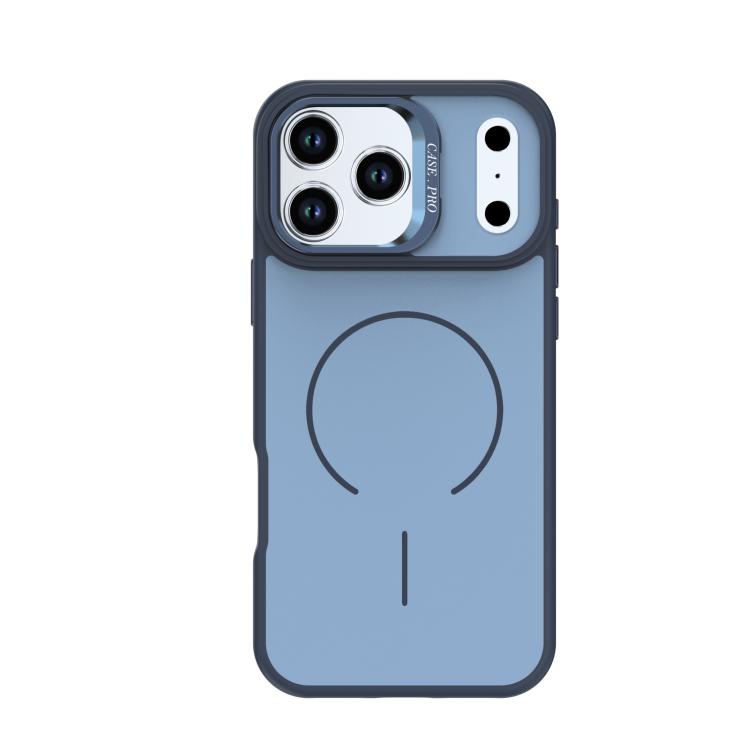 Funda Magsafe para iPhone 17 Pro Max con soporte para cámara y tacto suave en contraste de colores brillantes (azul)