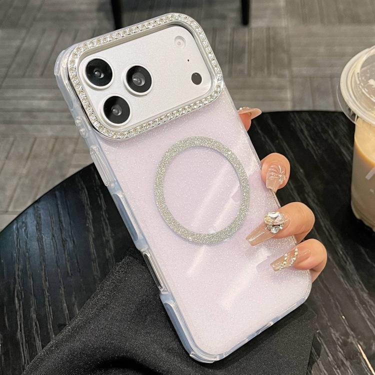 Funda MagSafe semitransparente con purpurina y bordes redondeados para iPhone 17 Pro (morada)