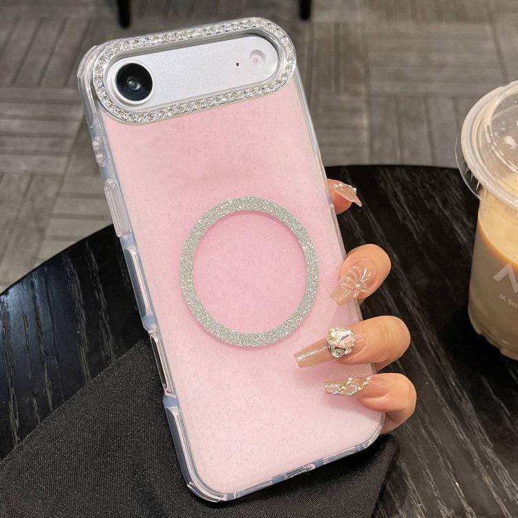 Funda MagSafe semitransparente con purpurina y bordes redondeados para iPhone Air (rosa)