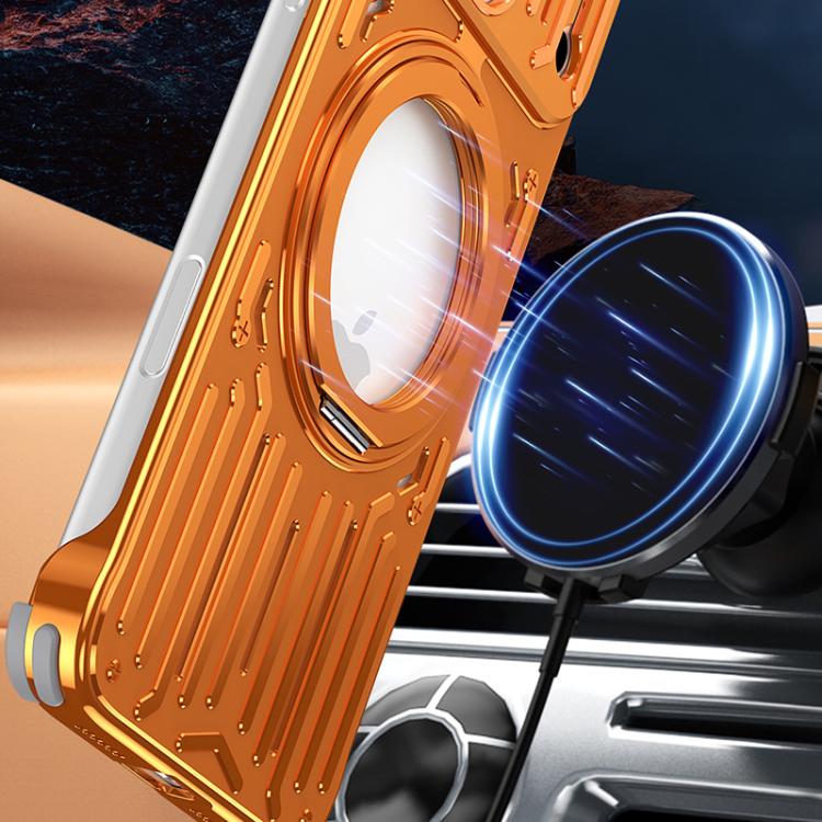 Funda metálica sin marco con soporte giratorio y refrigeración para iPhone 17 Pro Mech Series (plateada)