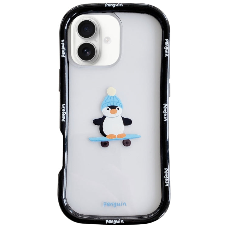 Funda para iPhone 16 Marco de PC Colorido TPU Transparente Patrón Navideño (Pingüino)