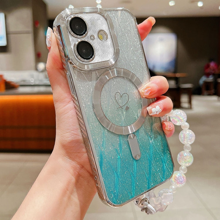 Funda para iPhone 16 con Purpurina Degradada y Hojas de Amor Fibra de Carbono Magsafe TPU (Verde)
