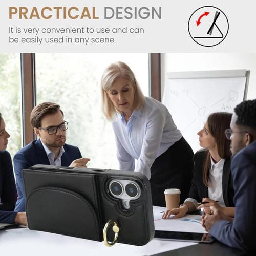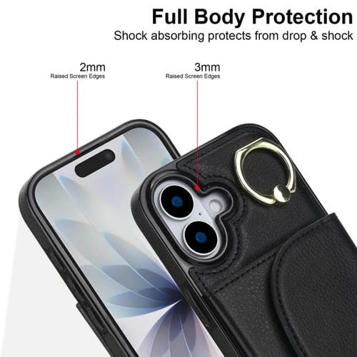 Funda para iPhone 17 con tarjetero y anillo, con tacto de piel (negra)