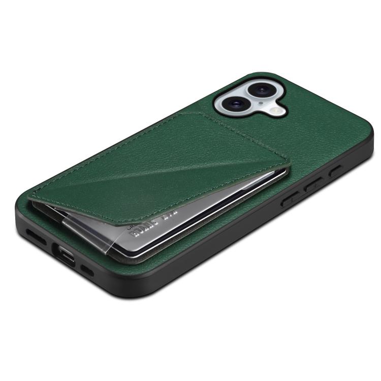 Funda para iPhone 17 D04 con textura de becerro y ranura para dos tarjetas (verde)