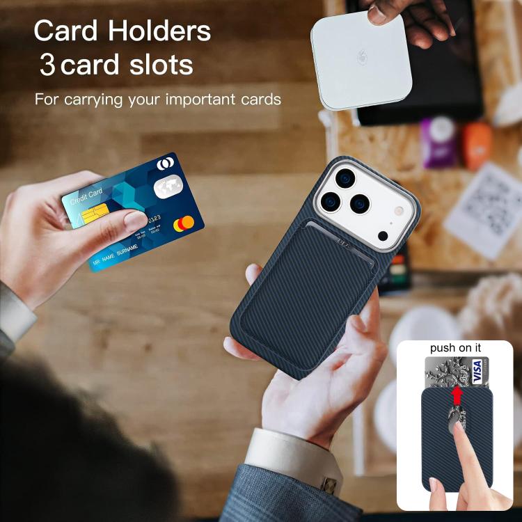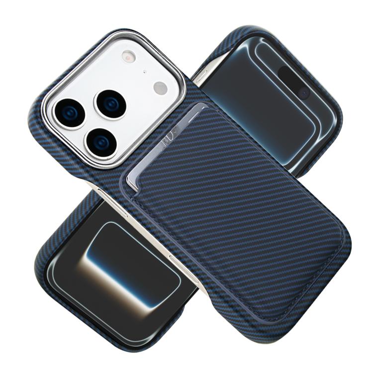 Funda para iPhone 17 Pro con tarjetero magnético MagSafe de fibra de carbono (azul)