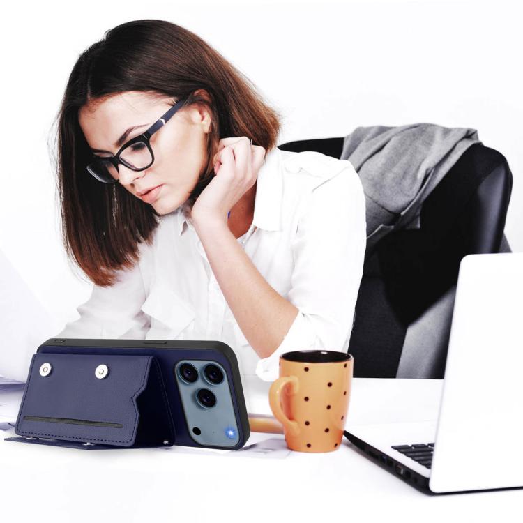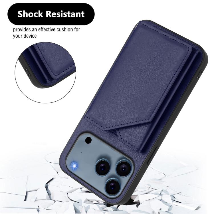 Funda para iPhone 17 Pro Max con cuatro ranuras para tarjetas y correa para la muñeca (azul)