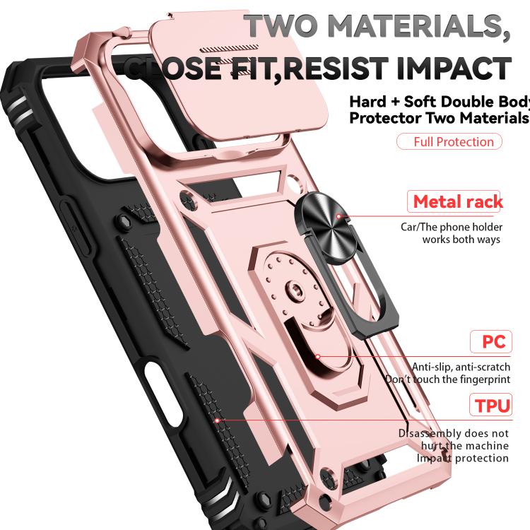 Funda para iPhone 17 Pro Max con soporte deslizante Camshield (Oro rosa)