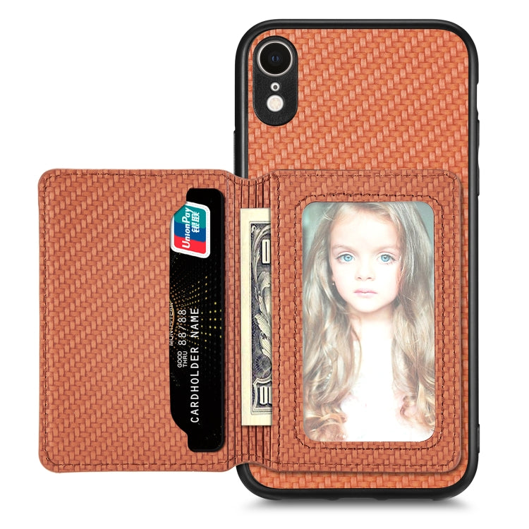 Funda para Teléfono Fibra de Carbono iPhone Xr Bolsa de Tarjeta Magnética (Marrón)