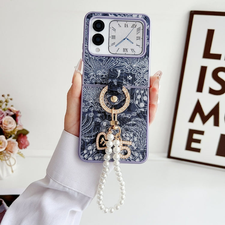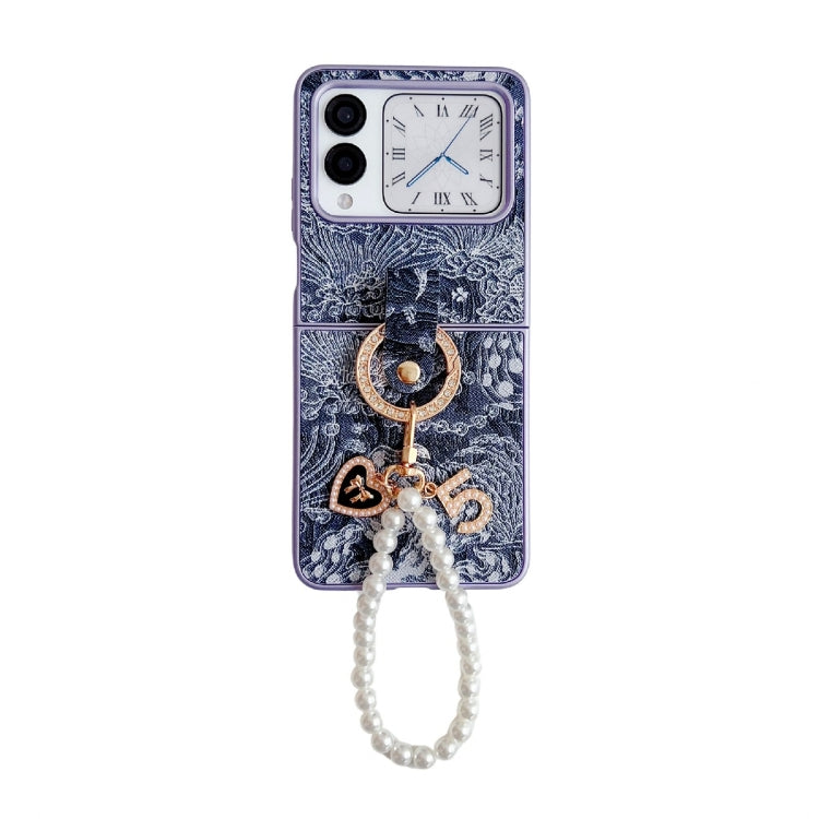 Funda para Teléfono Huawei Nova Flip con Cobertura Total Bordado Cadena y Anillo (Azul)