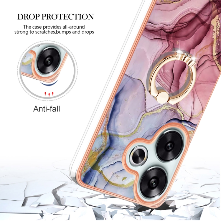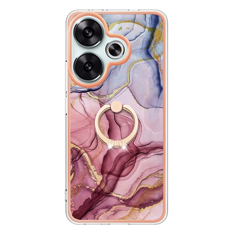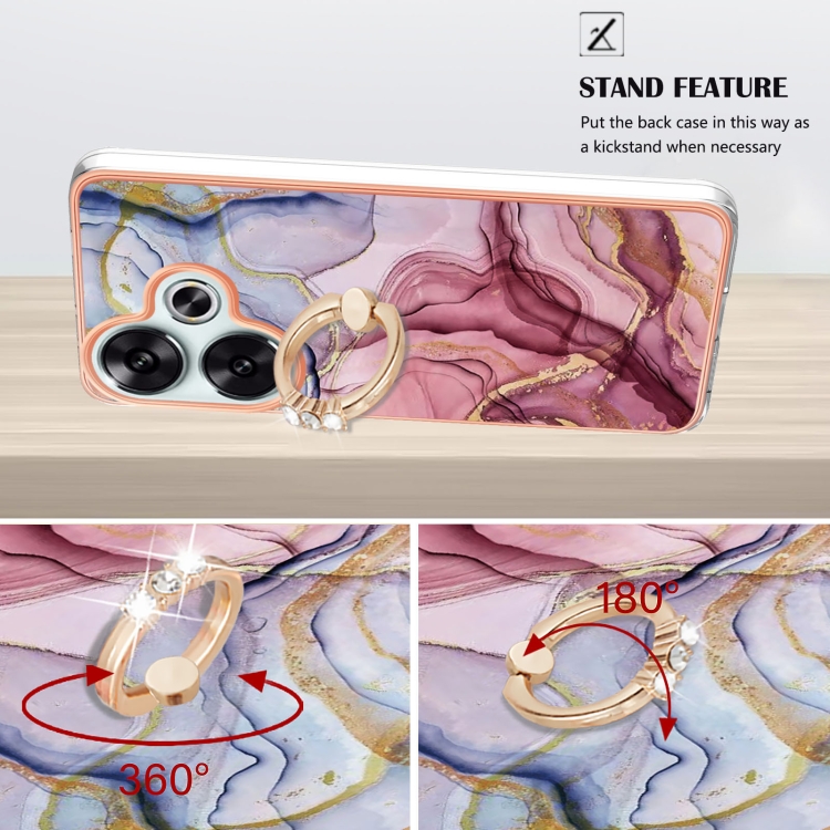 Funda para Teléfono con Imd de Doble Cara con Galvanoplastia de Mármol para Xiaomi Poco F6 5G con Anillo (Rojo Rosa 014)