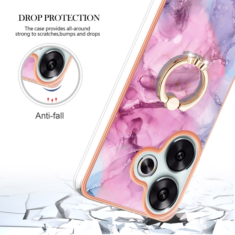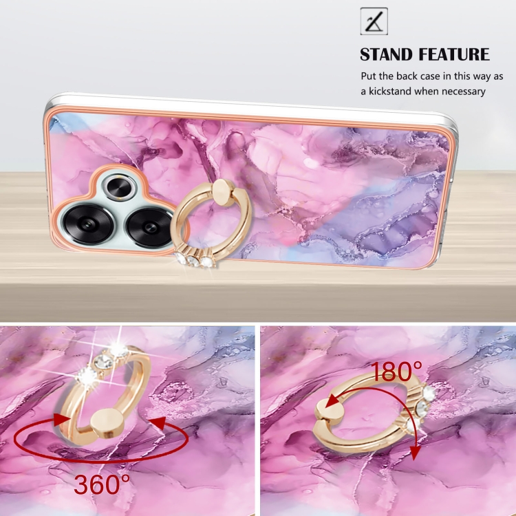 Funda para Teléfono con Imd de Doble Cara con Galvanoplastia de Mármol para Xiaomi Poco F6 5G con Anillo (Rosa 013)