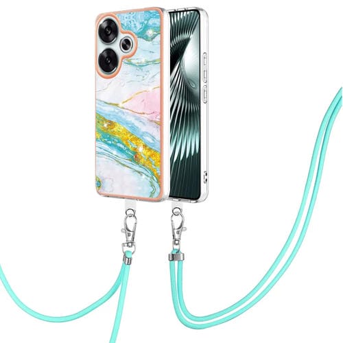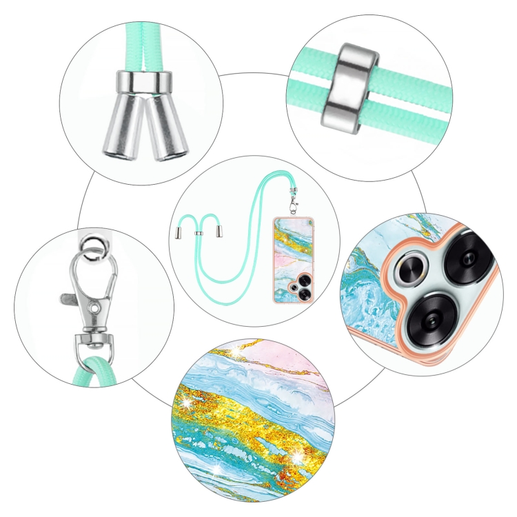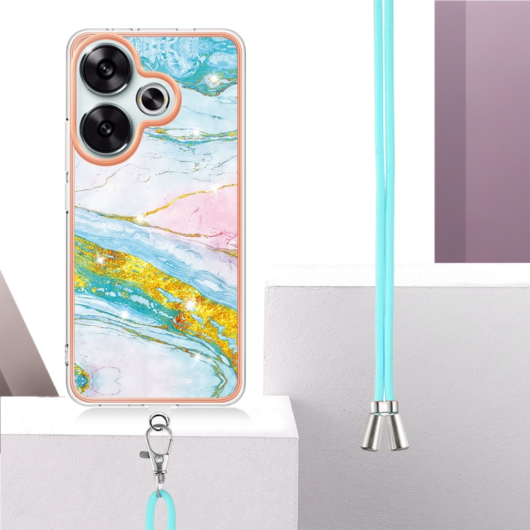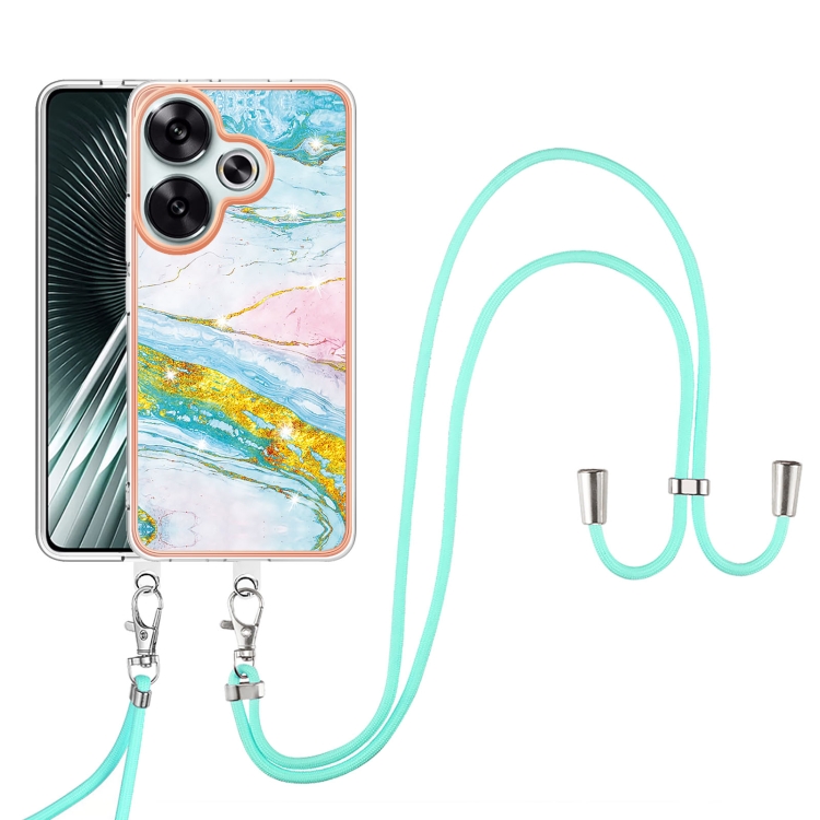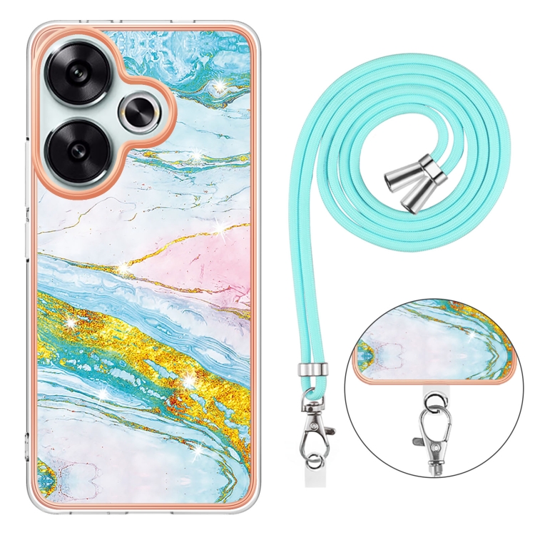 Funda para Teléfono con Imd de Doble Cara con Galvanoplastia de Mármol para Xiaomi Poco F6 5G con Cordón (Verde 004)