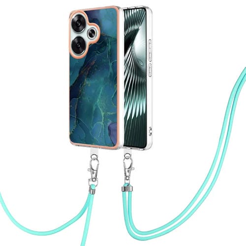 Funda para Teléfono con Imd de Doble Cara con Galvanoplastia de Mármol para Xiaomi Poco F6 5G con Cordón (Verde 017)