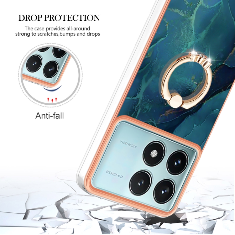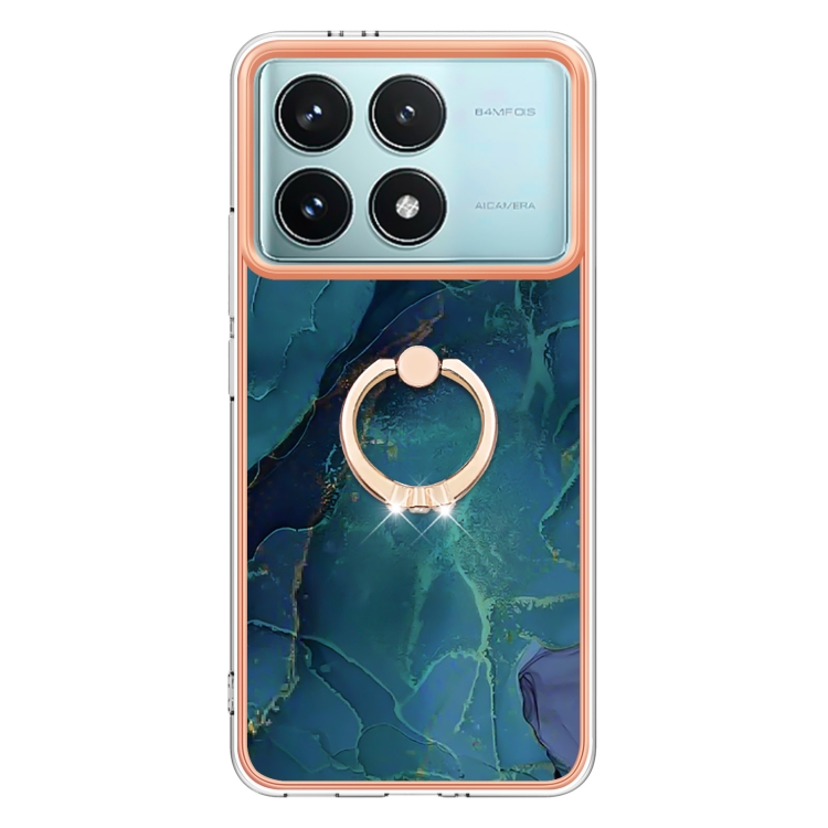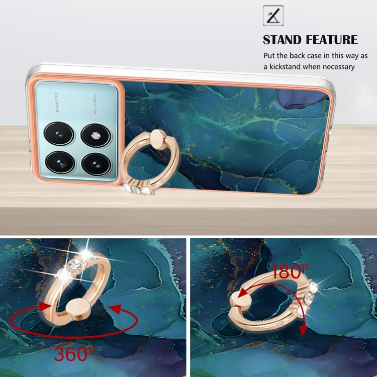 Funda para Teléfono con Imd de Doble Cara con Galvanoplastia de Mármol para Xiaomi Poco F6 Pro 5G con Anillo (Verde 017)