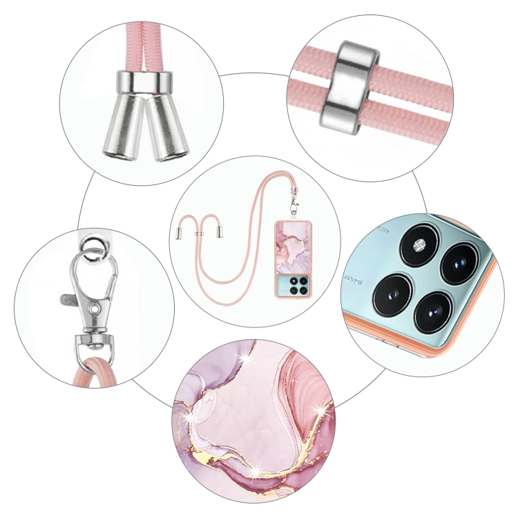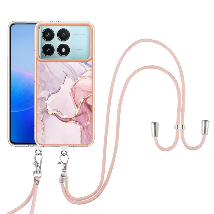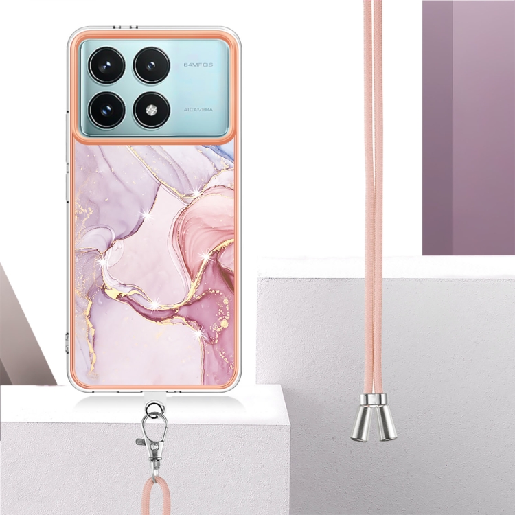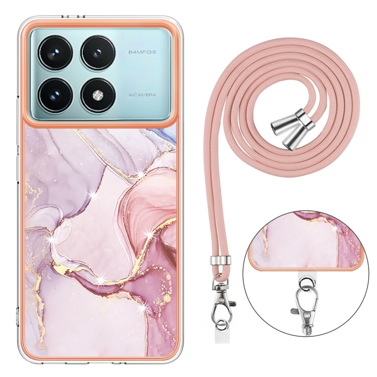 Funda para Teléfono con Imd de Doble Cara con Galvanoplastia de Mármol para Xiaomi Poco F6 Pro 5G con Cordón (Oro Rosa 005)